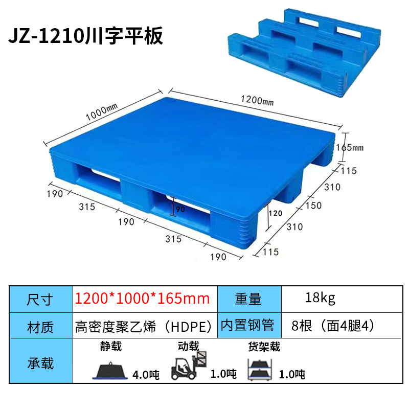 平板川字塑料托盤的結(jié)構(gòu)設(shè)計合理,使其具有較強(qiáng)的承載能力。根據(jù)不同的使用需求,塑料托盤可以定制不同的尺寸和載重能力,滿足不同場景下的物流需求。
