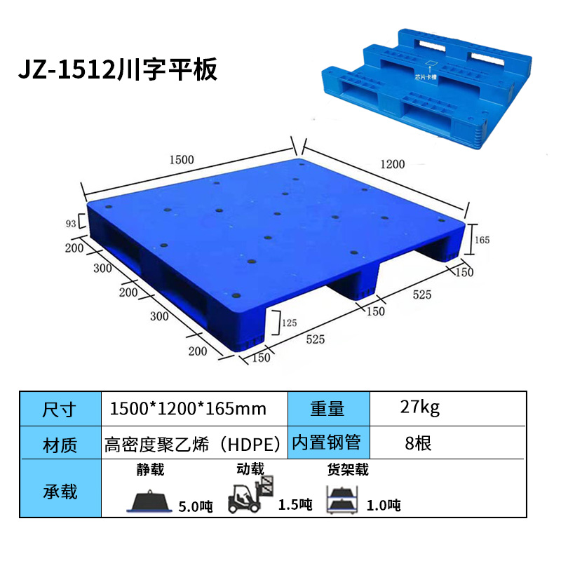尺寸:1500*1200mm川字平板塑料托盤(pán)