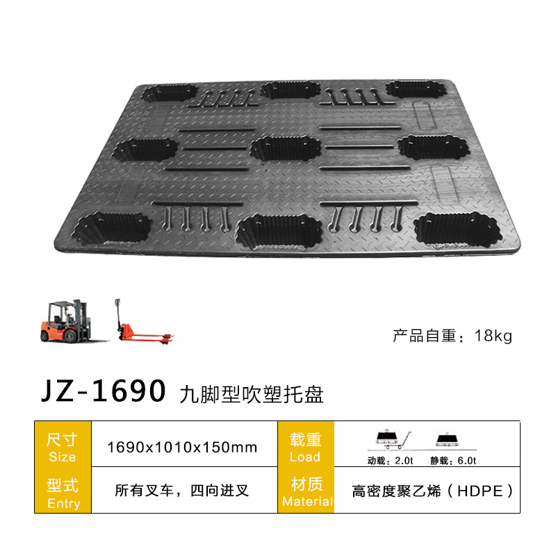 九腳均勻分散在托盤的受力點處,使托盤受力均勻,不易變形。